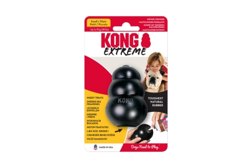 The KONG Extreme dog toy represents the most durable strength of KONG rubber. Designed for the toughest of chewers, the KONG Extreme offers enrichment and helps satisfy dogs’ instinctual needs. The KONG unique, ultra-durable, natural rubber formula is designed for determined chewers, while the erratic bounce fulfills a dog’s need to play. Want to extend play time? Be sure to stuff with tempting bits of kibble and entice with a dash of peanut butter. Add to the fun by adding KONG Snacks and top with KONG Easy Treat. Stuff and Freeze for a longer-lasting challenge.